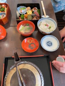 瑜伽庵にて、お好きな骨董茶碗をお選び頂き、お点前を見ながら厳選された「しつらえ」、季節のお菓子と抹茶を楽しんで頂きます。そののち、桃山時代の鉄銚子に入れた越乃寒梅別撰の飲み放題と共に、骨董の器で毎回好評のミニ懐石料理を味わって頂きながらお時間までご歓談をお楽しみ下さい。(入れ替え制の為抹茶を先にご提供しています。 以上